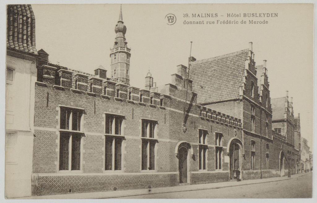 Het 'Hof van Busleyden' is vanaf 1503 gebouwd door Antoon I en Rombout II Keldermans voor de humanist Jeronimus van Busleyden. In 1619 richt Wenceslaus Coberger er een 'Berg van Barmhartigheid' in. Armen konden er geld lenen in ruil voor een pand. In 1914 loopt het zware schade op door Duitse bombardementen. Na een uitslaande brand blijven alleen de buitengevels overeind staan. Na restauratie biedt het vanaf 1938 onderdak aan het stedelijk museum. Het gedeelte langs de Merodestraat blijft pandjeshuis tot en met de Eerste Wereldoorlog.