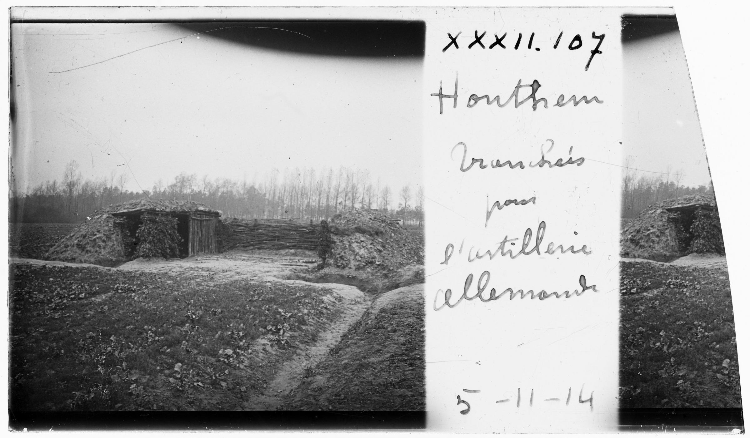 Duitse loopgraven voor de artillerie in Houtem tijdens de bginemaanden van WOI in 1914